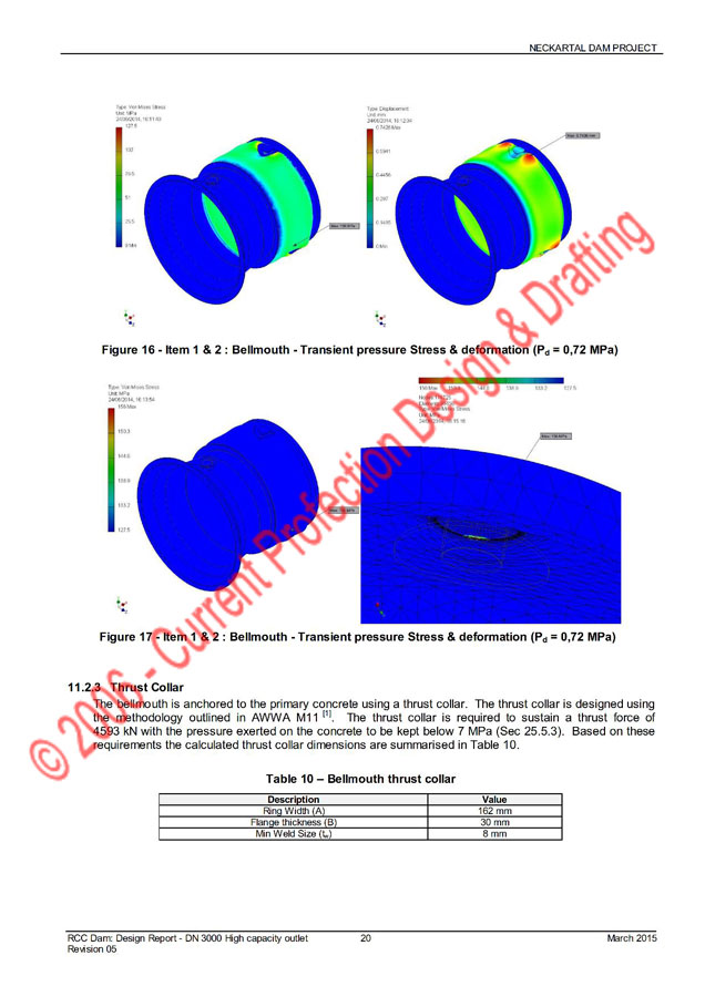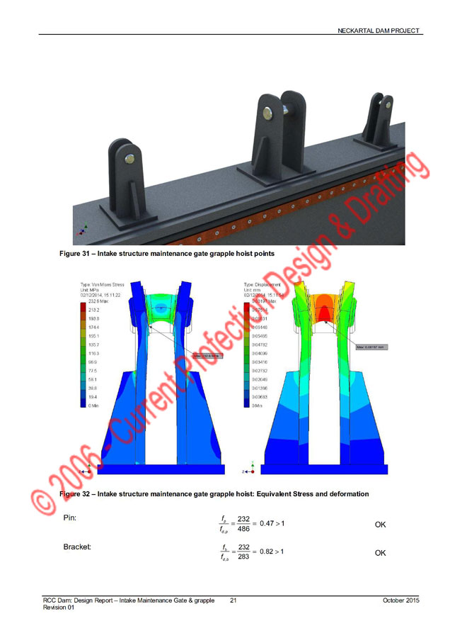 Analysis capabilities range from water hammer investigations, structural analysis using Finite Element Methods. Analysis results are checked to various international standards such as DIN 19704, EM 110-2-2015 for gate structures on dams and ASCE MOP 79 or AWWA Manual 11 for penstocks and dam outlet structures. Other international codes may also be used depending on project specific requirements.